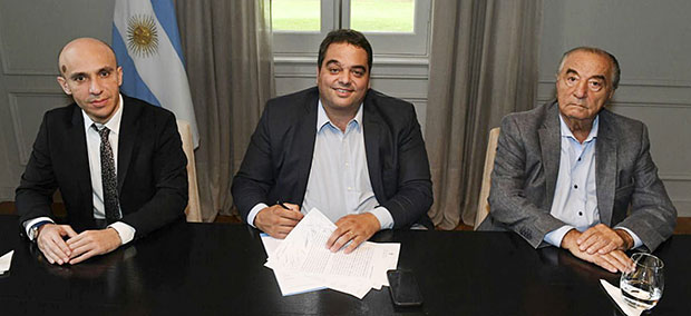 La firma del convenio se realizó en la Quinta Presidencial de Olivos y participaron el CEO de la filial argentina de la compañía, Rami Beitieh, el secretario general del gremio, Armando Cavallieri, y el ministro de Trabajo, Jorge Triaca.