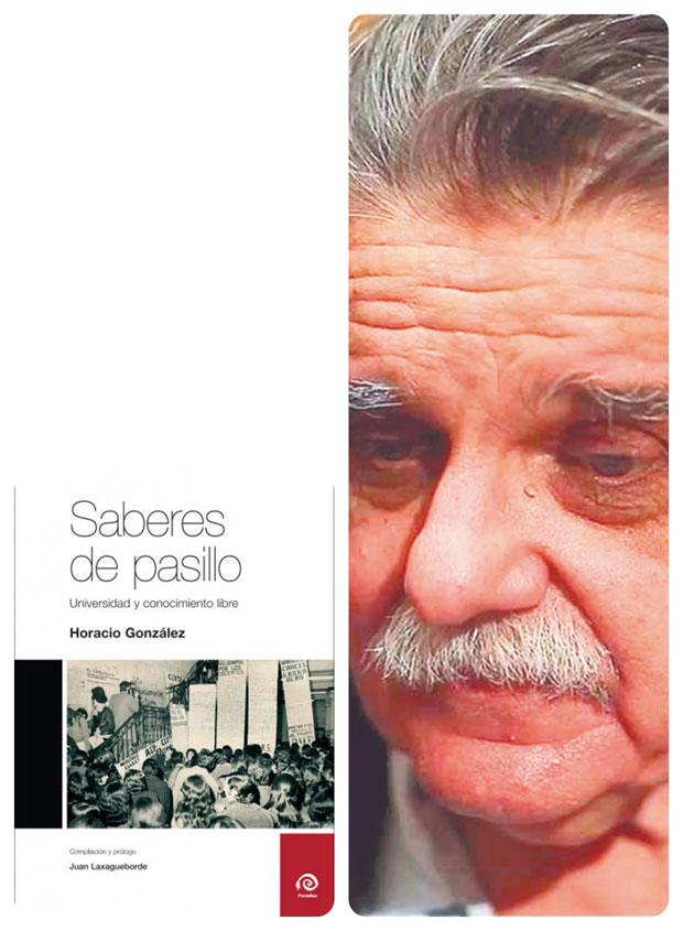 Es una pena que Juan Laxagueborde, compilador de Saberes de pasillo. Universidad y conocimiento libre, de Horacio González, no haya hurgado en esos textos viejos. Pero eso no le quita un ápice de interés a su trabajo, ni mucho menos a los textos de González: una serie de artículos publicados originalmente de los 90 en adelante sobre la universidad, la posibilidad del conocimiento universitario, la sociología como estante teórico de reflexión y, por supuesto, la tensión entre universidad y espacio público, o dicho de otro modo, entre la universidad y la época. Y si el libro no pierde un ápice de interés, es porque este telón de fondo está presente en todos los textos.