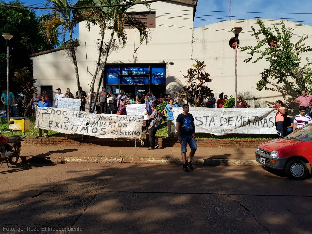 La marcha interrumpió el tránsito en las principales arterias de Iguazú. Una vez que los manifestantes llegaron a la puerta de la delegación local de la prestataria, exigieron dialogar con el jefe de distrito, Antonio Ruiz Cobo, ante quien plantearon que en las Dos Mil Hectáreas vivirían unas 3.000 familias. El funcionario, sin embargo, afirmó que en la empresa constan solamente 150 conexiones regularizadas.