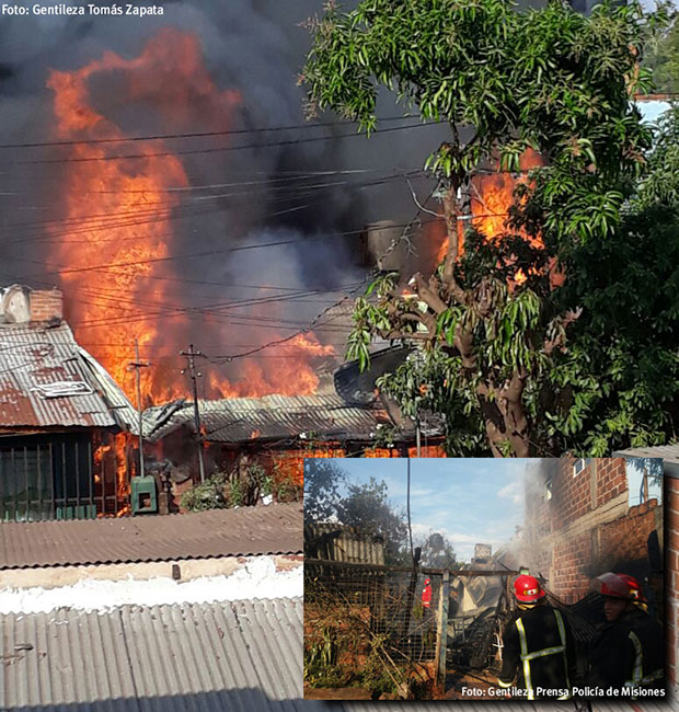Las llamas fueron combatidas por efectivos de la División Bomberos Zona Sur, San Isidro y Centro de la Policía de Misiones, además de la colaboración de los Voluntarios de Itaembé Miní y TUM.