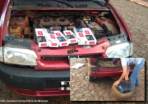 Un hombre de 35 años transportaba cigarrillos sin el correspondiente aval aduanero en la rueda de auxilio del vehículo en el que viajaba y en la zona del motor del mismo.