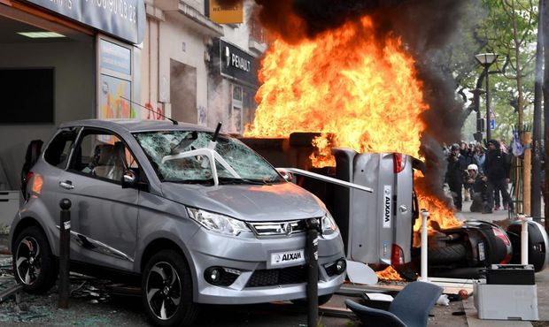 #Paris la #manif1ermai vire à la violence extrème. Magasins et véhicules en feu. pic.twitter.com/veqkmTG7Y8