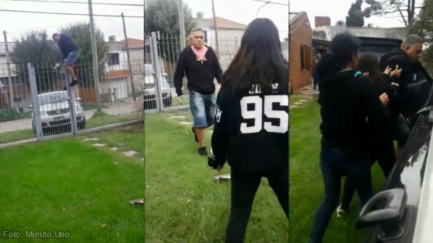 En las imágenes se ve cómo el hombre, un sindicalista llamado Ricardo Villan, sin mediar palabra, se trepa en la reja de la casa y camina hacia la camioneta que estaba estacionada en el jardín. En el medio se cruzan dos adolescentes, que serían sus hijas, y las empuja para correrlas, y pese a los gritos abre el vehículo y comienza a tirar las cosas que había adentro.