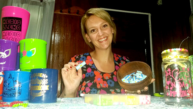 “En 2014 me había quedado sin trabajo” y ese fue el puntapié inicial, pues “comencé a crear alfombras y luego mis amigas me decían: ‘vendelas, create una página y ofrecé’. Creo que todas las emprendedoras comenzamos con eso, un hobby, haciendo lo que más nos gusta y luego gusta a la gente. Me sumé a todas las ferias y hasta ahora sigo capacitándome, asisto a todos los cursos y talleres donde siempre aprendemos algo, no podés salir de un curso sin haber aprendido al menos una cosa para sumar a tu proyecto”.