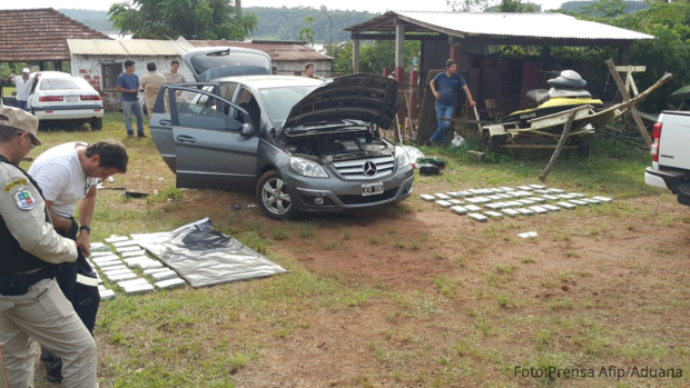 Los ladrillos iban ocultos en un Mercedes Benz. Un paraguayo nacionalizado argentino y con residencia en Buenos Aires terminó detenido. Investigan el origen del estupefaciente.