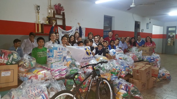 Ni la lluvia detuvo a los jóvenes del Colegio Roque González que en compañía de los docentes se trasladaron hasta Parada Leis para llevar los elementos donadosLa 19 edición de la Bicicleteada Solidaria del Colegio Roque González reunió toneladas de alimentos no perecederos, que este martes comenzó su cronograma de distribución en los comedores y hogares de distintos puntos de Misiones. En este caso fue el turno de Parada Leis, donde los chicos del instituto educativo compartieron una mañana de solidaridad.