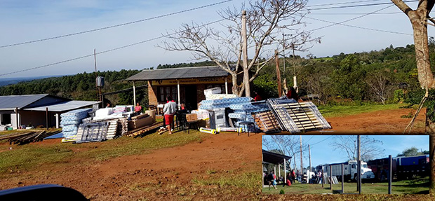 La ONG mencionada recibió el lunes un cargamento de varios camiones repletos con muebles, colchones, camas, materiales y otros bienes que llegaron desde Buenos Aires y se depositaron en un predio que la entidad posee en el municipio de Campo Ramón, donde funciona desde el año pasado.