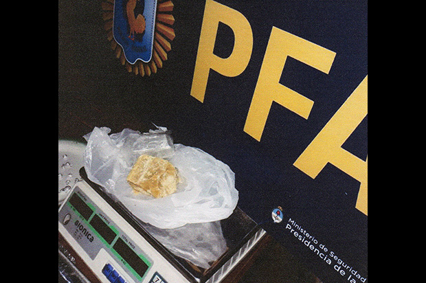 Al revisar el lugar los efectivos hallaron un ladrillo de “paco”, del cual se pueden obtener 1.627,5 dosis; una balanza de precisión; una prensa; un arma de fuego marca Taurus con un cargador, dinero en efectivo, entre pesos argentinos y reales brasileños; tres celulares y documentación de interés.