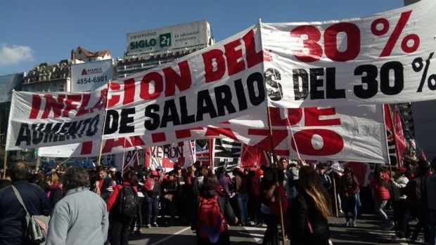 Los manifestantes se pronunciaron en contra de un posible acuerdo con la entidad financiera y pidieron “congelar el precio” de los servicios públicos, al tiempo que las agrupaciones de trabajadores informales reclamaron “mejoras salariales” en los planes de empleo oficiales, manejados por el Ministerio de Desarrollo Social.