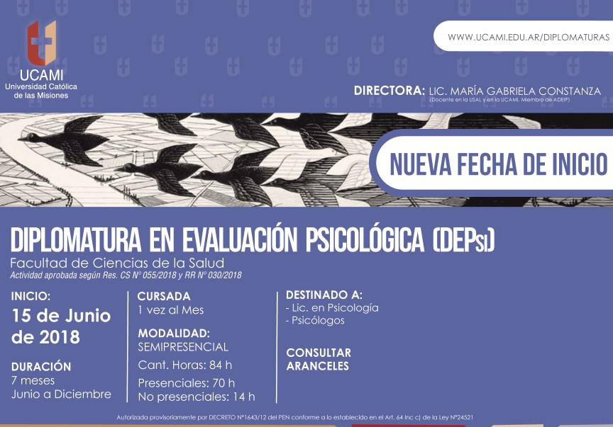 La Diplomatura es organizada por la Facultad de Ciencias de la Salud ,está destinada a Psicólogos y Licenciados en Psicología y comenzará el 15 de junio.
