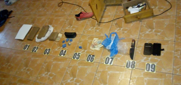 También se secuestraron tres envoltorios rectangulares o “panes” de marihuana, que pesaron en total  2,070 kilogramos, listos para su comercialización, además de balanzas de precisión, un cuchillo de corte, 5.000 pesos en efectivo y motopartes cuyo origen y procedencia eran dudosos.