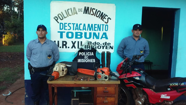 En el “aguantadero” los efectivos recuperaron una motocicleta Motomel Skua 150cc, una perforadora, una motosierra, un par de botas de trabajo, prendas de vestir, varias herramientas y hasta una frazada.