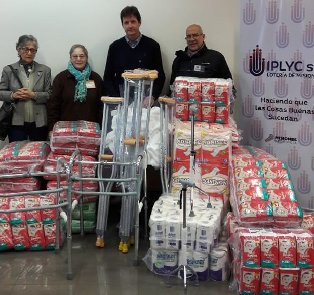 La ONG cumple servicios ad honorem en tres hospitales de la capital provincial y su trabajo apunta a mejorar la calidad de vida de los pacientes de escasos recursos que se encuentran internados en estos nosocomios y la de sus familiares. De la partida fueron dos andadores regulables, dos muletas grandes, dos muletas medianas -todos de aluminio-, y dos trípodes regulables, jabón común blanco, desodorantes, papel higiénico, pañales para niños y adultos y tela para la confección de toallas.