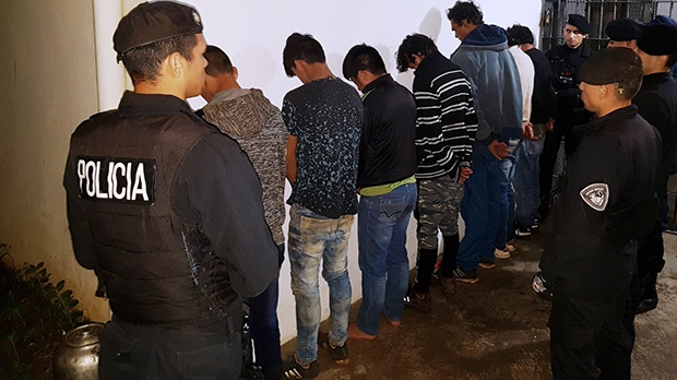 Los detenidos fueron identificados Rolando D. (42), Rolando B.V. (30); Javier G. (20), Jonathan D. (18) quien tenía un cuchillo entre sus prendas. Además aprehendieron a tres menores de entre 13 y 17 años.