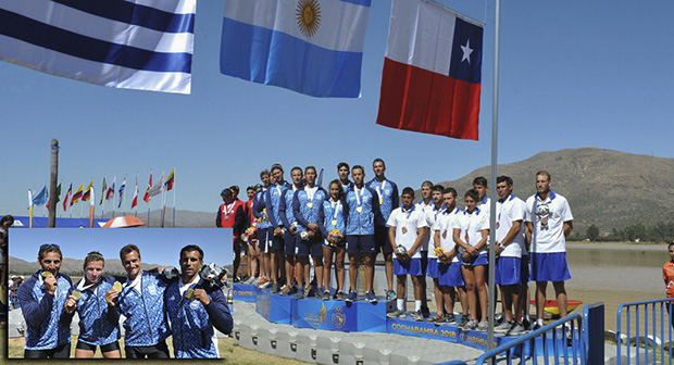 Se impusieron con un tiempo de 6:13.30 minutos, por delante de Chile (6:13.79 minutos) y Uruguay (6:34.14).