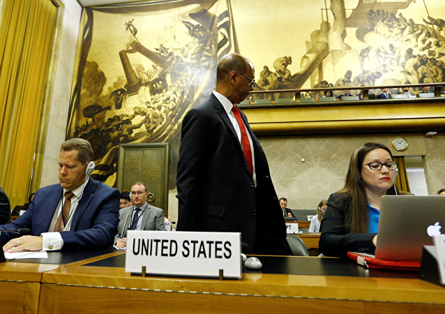 Para marcar su oposición, el embajador de Estados Unidos dejó la sala durante el discurso del embajador sirio Husam Edin Aala que abrió la sesión en el Palacio de las Naciones en Ginebra.