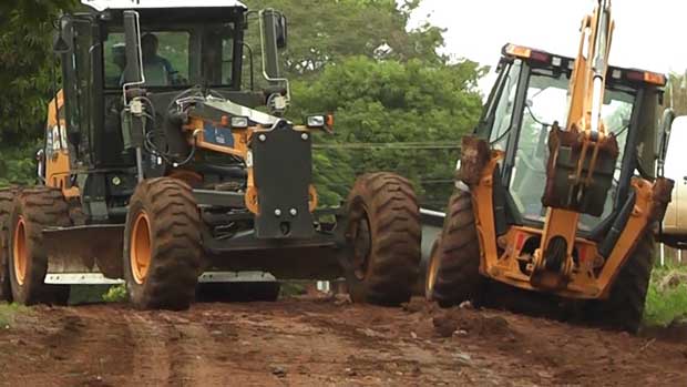 Operarios de Obras Públicas desarrollaron hoy en las calles internas del barrio tareas de perfilado, entoscado, compactación, retiro del suelo vegetal y limpieza de excedentes.
