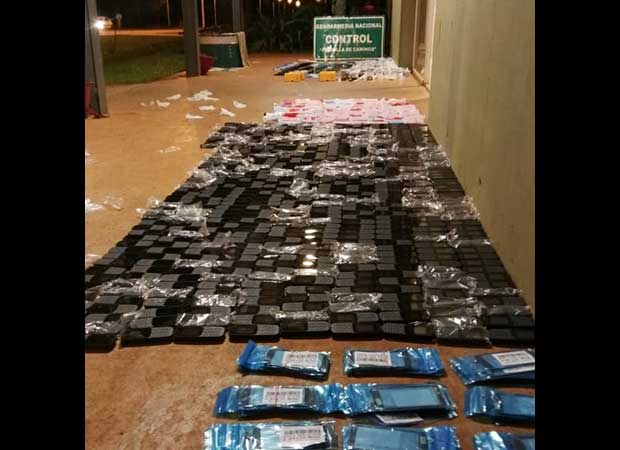 Arrojando un total de 920 celulares de diferentes marcas y modelos, 253 repuestos para celulares, 560 baterías para celulares, trece cargadores para celulares, toda mercadería de origen extranjero y sin el correspondiente aval aduanero, con avalúo estimativo de 1.200.000 pesos.