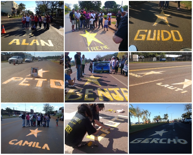 Nosotros todos los domingos nos juntábamos con familiares de las víctimas y pintábamos estrellas, en pos de ese ser querido que ya no lo tenían. Hoy la actividad es menor, pero sigue en pie y además muchas estrellas fueron tapadas por las repavimentaciones que se realizan en la ciudad y deben volver a ser pintadas, reseñó la coordinadora del grupo en Misiones.