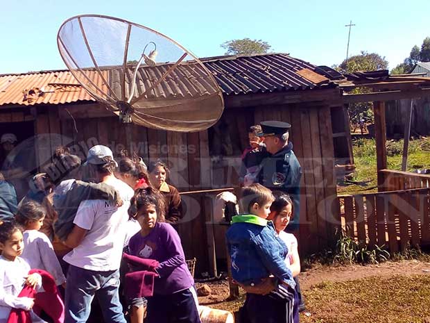 Los más beneficiados fueron los niños y personas mayores, que recibieron de mano de los policías las ropas y abrigos. La recorrida de los móviles policiales por esos dos barrios fue el viernes en horario de la siesta.