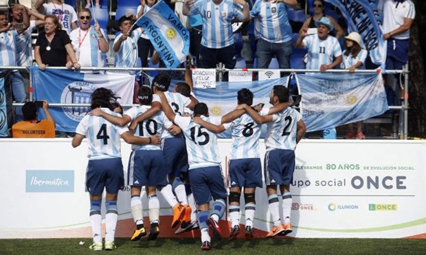 La Selección argentina de fútbol para ciegos superó 1-0 a Inglaterra por penales tras empatar 1-1, en su cuarta presentación en el Mundial de Madrid, y clasificó a semifinales.