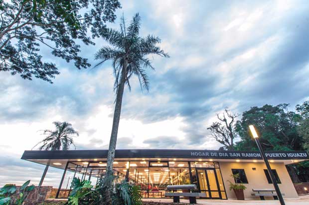 El Hogar de Día, donado al Obispado de Puerto Iguazú y cuya administración está a cargo de las religiosas de la Congregación Siervas del Espíritu Santo, tiene capacidad para 200 ancianos y es abierto a toda la comunidad. Es un edificio de 1.165 metros cuadrados en un sector privilegiado del terreno con vistas a la ribera del río Paraná. Además cuenta con áreas de estar, equipadas con mesas para juegos, sectores de descanso, gimnasio, comedor y cocina. Asimismo, el edificio contiene consultorios médicos, salas de enfermería y rehabilitación, oficinas administrativas, un lavadero, y un área de sanitarios especialmente equipados y adaptados para la tercera edad.