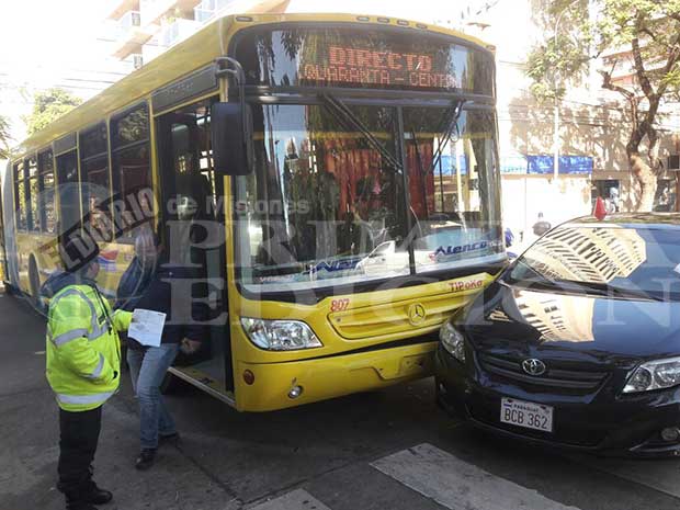 Esta mañana en Entre Ríos y Ayacucho colisionaron un automóvil con patente paraguaya y un colectivo troncal de la empresa Tipoka. No hubo que lamentar heridos, sí daños materiales.