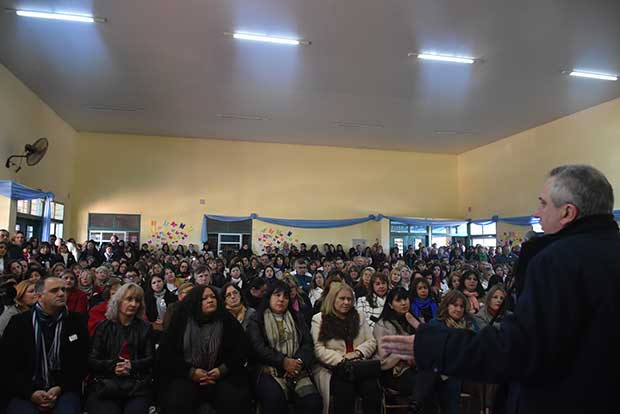 “Dos cosas me conmueven de este proceso denso, serio, importante que hicieron para lograr la titularización: primero es la ejemplaridad, porque como docentes podemos no ser perfectos, pero tenemos la obligación de ser ejemplares (…) en segundo lugar, no existe forma de construir una sociedad, en tiempos de dificultades, sin escuelas; y esa responsabilidad tiene que tener una retribución y esa retribución viene a partir del terrible esfuerzo que significó para todos este proceso de titularización afirmó el gobernador Passalacqua.