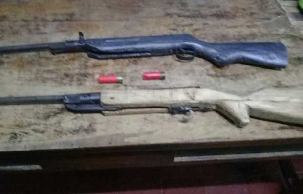 Anoche en Paraje Las Quemadas los efectivos de la comisaría local allanaron la casa de una mujer y secuestraron escopetas de aire comprimido y cartuchos calibre 16.