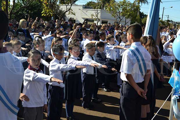 El acto culminó con el desfile Cívico Militar a cargo de los alumnos de cuarto grado, el Regimiento de Infantería de Monte 30 y agrupaciones gauchas.
