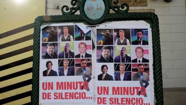 También en la pancarta figuran los columnistas Marcelo Palacios, Leonardo Farinella (además es director del diario Olé), Flavio Azzaro y Hugo Balassone.
