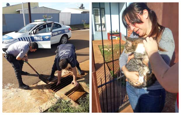 Durante este siesta un grupo de vecinos intentaba salvar a “Renn”, una gata que había caído al conducto. Efectivos del Destacamento de Itaembé Guazú que realizaban una recorrida se sumaron a la tarea y lograron destapar la alcantarilla y poner a resguardo al animal. .