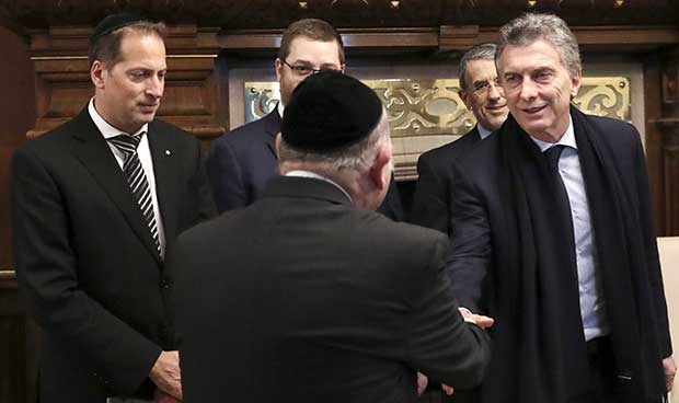 "Estamos construyendo vínculos con el mundo y colaboramos en la lucha contra el terrorismo internacional. Por eso tenemos que seguir manteniendo vigente nuestro reclamo de justicia", resaltó el jefe de Estado y dijo que el pedido de la comunidad judía en ese sentido era "perfectamente viable".Según informó Casa Rosada, Macri le transmitirá el planteo al ministro de Relaciones Exteriores, Jorge Faurie, para que sea la Cancillería el ámbito donde se concentren todas las gestiones tendientes a impulsar el reclamo para lograr la detención en otros países de los extranjeros requeridos, tras la caída del Memorándum de Entendimiento con Irán firmado durante el Gobierno de Cristina Kirchner.Tras el encuentro en el despacho presidencial, el titular de la AMIA, Agustín Zbar, precisó: "Le pedimos al Presidente y vamos a pedir este miércoles en el acto que todos los poderes del Estado, todos los sectores políticos de la Argentina y las organizaciones no gubernamentales hagamos más para que los imputados iraníes que tienen pedidos de captura internacional puedan ser atrapados y traídos a nuestro país".En diálogo con los periodistas acreditados en la Casa Rosada, el dirigente comunitario se refirió al reciente caso del ex canciller iraní Ali Akbar Velayati y recordó que "el juez (Rodolfo) Canicoba Corral libró un exhorto diplomático, pero no tuvo éxito y se fue sin ningún problema de Rusia" tras una visita oficial."Eso demuestra que es necesario que todos los poderes del Estado argentino y las naciones libres y democráticas del mundo cooperen para que los que están siendo buscados por la Justicia puedan ser traídos a nuestra jurisdicción", manifestó.En ese sentido, Zbar recordó que se vivieron casos similares con el ex embajador iraní en Buenos Aires Hadi Soleimanpour, que fue detenido en Londres en 2003, pero cuya extradición fue rechazada en aquella oportunidad por las autoridades británicas; y el ex ministro de Defensa del país asiático Ahmad Vahidi, que fue expulsado de Bolivia en 2011 luego de las quejas argentinas."El Presidente acompañó y acordó que es importante que en las relaciones exteriores argentinas este punto tenga un énfasis. Que nos dediquemos más a perseguir la Justicia internacional en este sentido", insistió el titular de la Asociación Mutual Israelita Argentina.Ante ese punto, Zbar remarcó que "hace falta trabajar más, construir una política de Estado en este sentido".Y concluyó: "Es una causa de todos los argentinos, no sólo de la comunidad judía. Por eso es necesario que todos hagamos un poco más para ser más eficaces".Del encuentro también participó el secretario de Derechos Humanos y Pluralismo Cultural, Claudio Avruj, quien señaló que el Gobierno está "buscando siempre los nuevos caminos para poder llegar a la verdad".El funcionario nacional integrará este miércoles la comitiva que participará del acto en homenaje a las 85 víctimas del ataque terrorista ocurrido el 18 de julio de 1994: también estarán presentes la vicepresidenta, Gabriela Michetti, el jefe de Gabinete, Marcos Peña; los ministros de Desarrollo Social, Carolina Stanley; y de Ambiente y Desarrollo Sustentable, Sergio Bergman."Se habló de un pedido de que Argentina esté más involucrada a nivel internacional, para que el pedido sea llevado a todos los foros internacionales. La reunión fue fundamentalmente sobre eso, mayor exposición internacional del tema", explicó el funcionario nacional.En declaraciones a Radio Nacional, sostuvo además que se buscará "que todos los voceros que están involucrados en el nivel internacional, lleven el tema" para intentar dar con los acusados iraníes.Por la mutual judía también concurrieron su vicepresidente, Ariel Eichbaum; el secretario general, Darío Curiel; el tesorero, Alberto Chaieno, y el director ejecutivo de la institución y sobreviviente del atentado, Daniel Pomerantz.Fuente: Agencia de Noticias NA