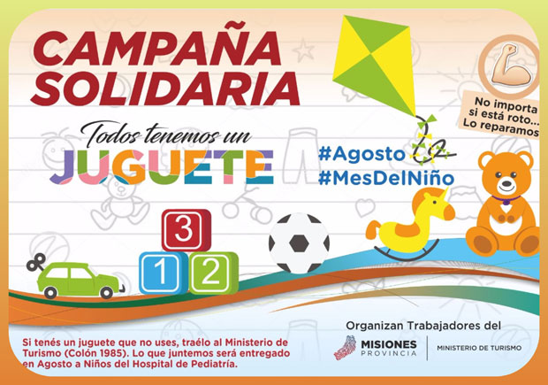 La campaña busca reunir juguetes, nuevos o usados. Los que no estén en buenas condiciones también serán recibidos, ya que se utilizarán como repuestos para reparar los menos dañados.“Desprendiéndose del lema del Destino Todos Tenemos Misiones”, el nombre de la propuesta es una doble afirmación: inicialmente invita a quienes tengan guardado algún juguete a que lo donen, así podemos concluir en la misma frase y realmente decir que todos tenemos un juguete”, expresaron desde la organización de la actividad.Quienes quieran formar parte de esta iniciativa solidaria, podrán acercarse a la sede del organismo, sobre la calle Colón 1985 casi La Rioja de la capital misionera, con su donación. Y para consultas, comunicarse al celular: (0376) 154742317.