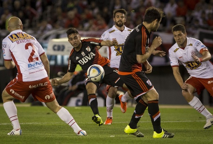 River y Huracán empataron este domingo por la noche 1 a 1 en un partido disputado en el estadio Monumental y correspondiente a la vigésima segunda fecha del torneo de Primera División.El local se puso en ventaja por intermedio de Gonzalo "Pity" Martínez, a los 14 minutos del primer tiempo, mientras que el "Rolfi" Daniel Montenegro logró la igualdad para el "Globo", a los 39 de la misma etapa.En el tanto de "Pity" Martínez había posición adelantada de Carlos Sánchez, que intentó cabecear el balón en la línea, pero el árbitro Saúl Laverni convalidó el gol.Ahora River suma 38 puntos en 21 partidos, frente a los 49 del puntero Boca (con un juego más).Fuente: Noticias Argentinas