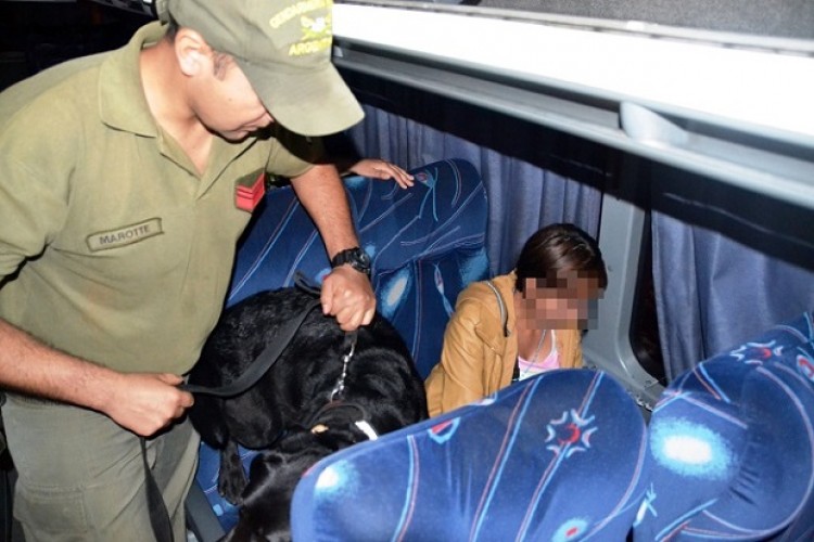 La presencia de organizaciones que transportan cocaína por Misiones volvió a quedar en evidencia el lunes por la noche, cuando una mujer de nacionalidad paraguaya cayó con un kilogramo de cocaína adosada al cuerpo, mientras viajaba desde Puerto?Iguazú a Buenos Aires.El procedimiento fue realizado por efectivos del Escuadrón 11 de San Ignacio, dependiente de la Región VI de Gendarmería Nacional, a la altura del kilómetro 1.440 de la ruta nacional 12, en jurisdicción de Jardín América.Fue alrededor de las 20:45 cuando los uniformados frenaron para control un micro de larga distancia. Al mismo subió el can antinarcóticos “Pehuen”, quien reaccionó al acercarse al asiento 22, donde viajaba la sospechosa.Bajo las medidas correspondientes, los gendarmes descubrieron que la mujer llevaba cuatro ladrillos de cocaína adosados al cuerpo, bajo su ropa interior.?Tenía como destino Puente La Noria, según se informó.En el caso tomó intervención el Juzgado Federal de?Oberá, que indagará a la arrestada.