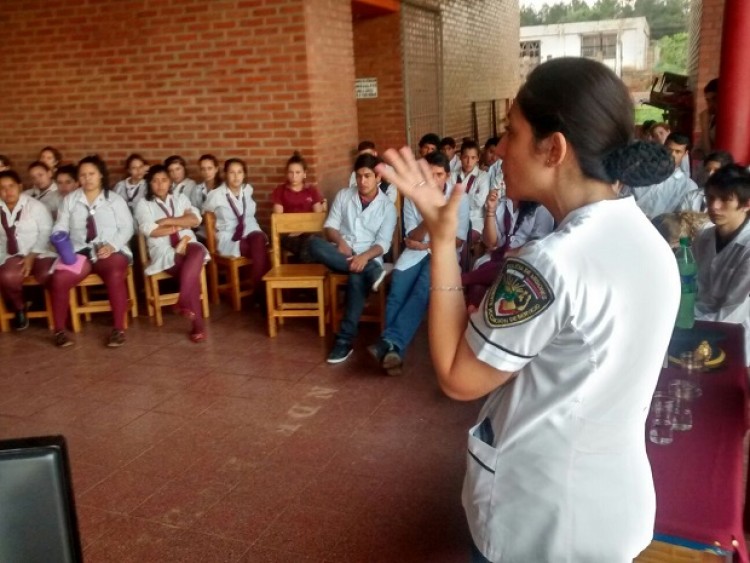 Alumnos del Bachillerato de Orientación Polivalente BOP 100 de la localidad de San Ignacio y del Instituto Inmaculada Concepción de Posadas recibieron la visita profesionales de la Dirección Policía Comunitaria, con el fin de dialogar sobre “Seguridad en la Vía Pública y Prevención de Adicciones”. En el primero de los casos participaron cerca de 90 alumnos del tercer, cuarto y quinto año turno tarde, con quienes a partir de la proyección de un video disparador, se dialogó sobre los consejos básicos de seguridad al momento de desplazarse por las calles, haciendo énfasis en mantener una actitud de permanente de alerta frente al medio circundante.En lo que refiere a la prevención de adicciones se trabajó con imágenes, en las cuales se fueron identificando aquellos comportamientos de riesgo que en muchas ocasiones permite iniciarse en el consumo de sustancias legales, ilegales como así también en adicciones comportamentales. En el caso del Instituto Inmaculada Concepción participaron más de 100 alumnos del nivel secundario turno tarde, con quienes se trabajo con la misma modalidad anterior. En ambas oportunidades participaron los jefes de las comisarías jurisdiccionales, del Comando Radioeléctrico, docentes y padres.