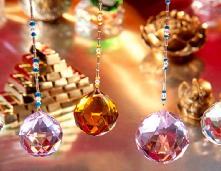 Las Esferas de cristal facetadas pueden colgarse, con una cuerda roja o nylon, cerca de las ventanas de la sala de estar o en el comedor, para atrapar a los rayos del sol de la mañana y reflejarlos en arco iris. Esto purificará el Chí que nos rodea, e ideal para tener el buen Feng Shui en habitaciones con poca luz solar. La ventaja de una Esfera de cristal facetada es que puede utilizarse en interiores para disolver Shar Chi (mala energía) en algunas situaciones.