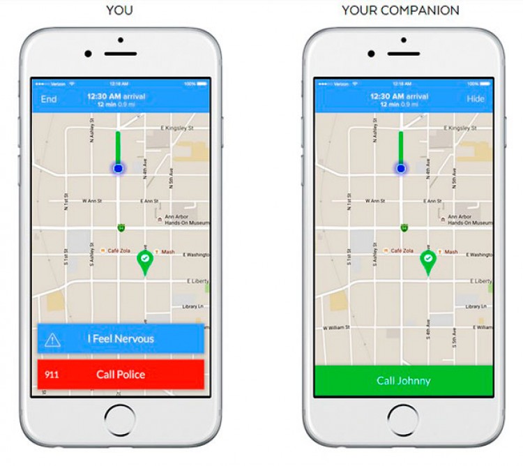 La aplicación permite que los usuarios le pidan a un amigo o familiar que les hagan compañía virtual y un seguimiento de su viaje a través de un GPS y un mapa en línea. Si bien la aplicación está disponible para Android y iOS, no es necesario que el amigo o familiar la tengan instalada para hacer el seguimiento,El usuario puede enviar varias solicitudes a diferentes contactos telefónicos quienes reciben un mensaje de texto SMS, con un enlace que los envía a una página Web en donde se les muestra un mapa interactivo que muestra al usuario caminando a su destino.La app detecta todo tipo de movimiento que realiza el usuario, por ejemplo, reconoce si se aleja de su camino, si es empujado o si comienza a correr.Si el usuario está bien, debe presionar un botón de la aplicación antes de los 15 segundos.En caso que no pulse el botón, la aplicación interpretará esto cómo una emergencia real e inmediatamente transforma al teléfono del usuario en un sistema de alarma personal que proyectará fuertes ruidos para asustar a los posibles atacantes de la escena y además dará la opción de llamar a la Policía.Simultáneamente, la aplicación enviará una alerta al contacto y esa persona puede optar por llamar a la Policía, o llamar directamente a su amigo o familiar.Fuente: Medios digitales