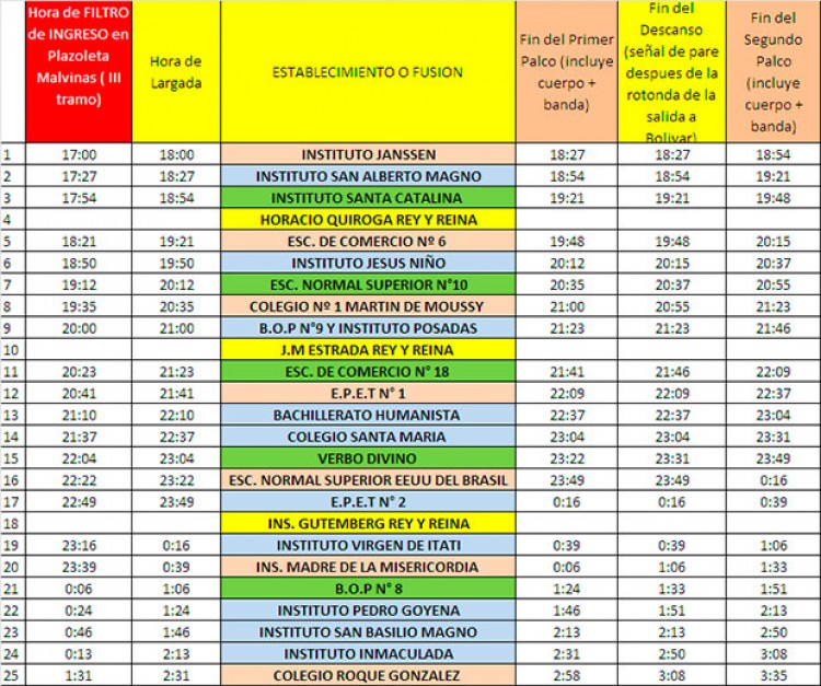 La primera jornada de la Estudiantina 2015 se realizará este viernes 11 a partir de las 18 y se prevé finalice cerca de las 3.30.