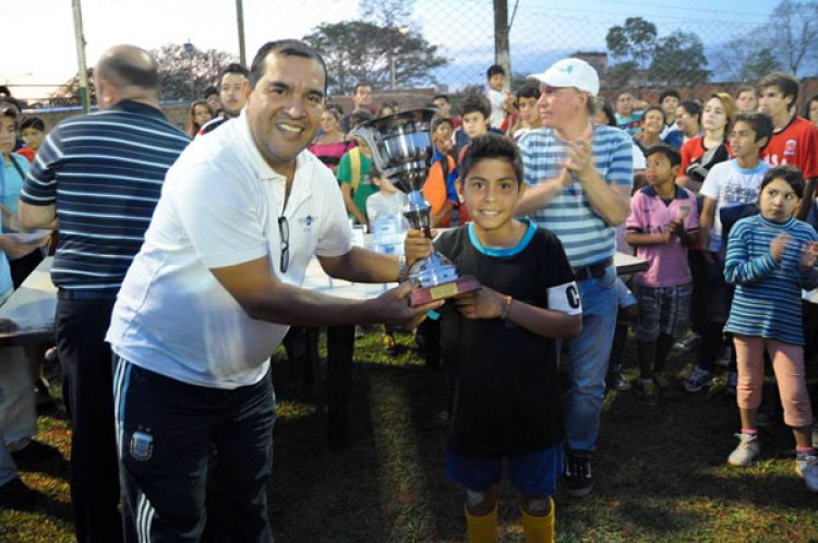 Las finales, que se desarrollaron en la cancha principal de la Liga, el podio de la categoría Sub-13 fue para los chicos del Centro Empleados de Comercio, que en la final venció 2 a 1 a Juventud y se adueñó de la Copa de Plata. Mientras que por la Copa de Oro, Galaxia derrotó a Tacuarí en la definición desde el punto del penal por 3 a 2, tras igualar en el tiempo reglamentario 1 a 1. La paridad de fuerzas se dio en casi todas las finales en las cuales se debió recurrir a la definición desde el punto del penal para consagrar a los ganadores. Por su parte, por la Copa de Plata, 1° de Mayo se quedó con el título frente a Luz y Fuerza al ganarle 6 a 5, también en los penales, tras el empate 1 a 1 que se registró en un partido vibrante y muy parejo. En tanto, el campeón de Copa de Oro de la categoría 2002/2003 fue Escuela Luz y Fuerza que logró una amplia ventaja 5 a 2 a Santa Rosa Juniors. La Copa de Plata fue para 1º de Mayo que venció por penales 6-5 a Luz y Fuerza.Otros campeonesEn la categoría 2004/2005, en cancha auxiliar de la Liga, Juventud superó por 3 a 2 a Santa Rosa y fue el campeón de la Copa de Oro. En tanto, la Copa de Plata quedó en manos de Escuela Luz y Fuerza que en la definición por penales superó a 1º de Mayo por 4 a 1 tras empatar 1 a 1, en tiempo regular.Por su parte, Los Halcones goleó a Rivera por 5 a 0 y fue tercero en la Copa de Plata. Las distincionesEn las clases 2006/2007, Luz y Fuerza recibió la distinción por la valla menos vencida. Mientras que el goleador fue Fabricio Ojeda (Ceci). En categoría 2004/2005, Centro de Empleados de Comercio de Iguazú (Ceci) recibió el trofeo a la valla menos vencida; mientras que Gabriel Pereyra (Santa Rosa) fue el goleador.En la 2002/2003, la distinción para la valla menos vencida fue para la Escuela de Luz y Fuerza. Mientras que el máximo artillero de la categoría fue Fabricio Rivero (Esc. Luz y Fuerza).