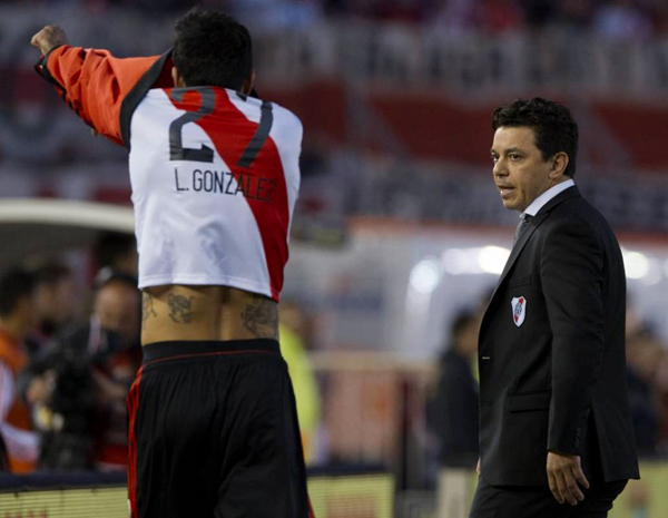 BUENOS AIRES (DyN). Al golpe de la derrota en el superclásico ante Boca Juniors, River Plate perderá por los próximos dos o tres partidos al volante Lucho González por un desgarro de aductor en la pierna izquierda.González sufrió un micro desgarro según dieron los estudios por lo cual en River estiman que tal vez pueda volver en dos semanas, una menos de lo que suele recuperar el músculo de una cortadura muscular usual.Sin embargo, los médicos irán evaluando los pasos de la recuperación del volante y los partidos que tenga que faltar.El propio jugador dijo que el médico le irá dando las pautas a seguir.“Estamos tristes por la lesión y por no haber ganado. Teníamos posibilidades de prendernos y encima es un superclásico”, lamentó González.Sobre el clásico que terminó en victoria de Boca lo analizó como “un partido muy luchado, muy disputado, no bien jugado y ellos tuvieron una situación y convirtieron”.Al igual que el entrenador Marcelo Gallardo, deslizó que el título en el torneo de Primera parece difícil de alcanzar.“Estamos lejos, esa es la realidad, hay que trabajar para levantar cabeza y pensar en las competiciones que se vienen como la Copa Sudamericana y el Mundial de Clubes”.González es suplente por estos días en River y ayer reemplazó a Leonardo Ponzio, quien corría riesgo de expulsión, a los 9 minutos del segundo tiempo por el dolor que sintió en el aductor salió reemplazado por el uruguayo Tabaré Viudez.River jugará la próxima fecha con Lanús en el Monumental y la siguiente deberá visitar a Crucero del Norte.