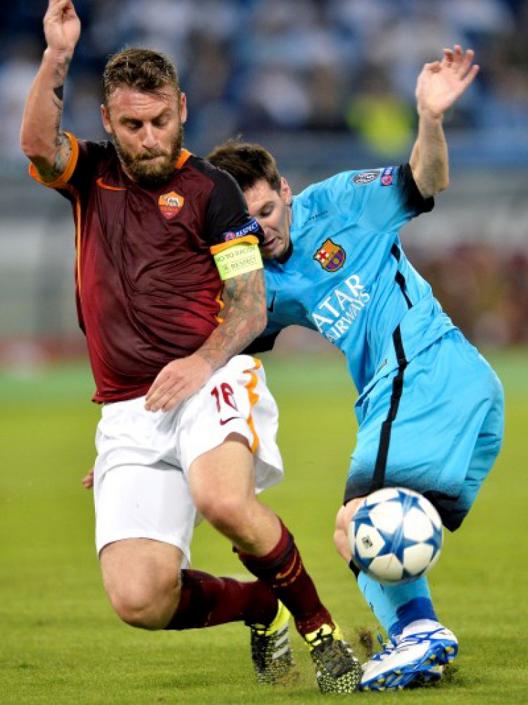 El uruguayo Luis Suárez adelantó a los españoles rematando con la cabeza un centro del croata Ivan Rakitic (21), y el lateral derecho Alessandro Florenzi empató con un tremendo disparo desde casi el centro del campo, pegado a la banda, que sorprendió al arquero alemán Marc André Ter Stegen (31).Por su parte, dos de los que aspiran a arrebatar la corona de la Liga de Campeones al equipo español, Chelsea y Bayern Múnich, comenzaron la competencia con cómodos triunfos ante Maccabi (4-0) y Olympiacos (3-0)