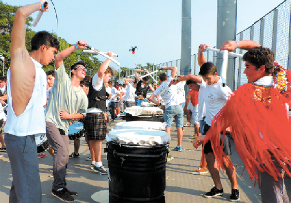 POSADAS. El cielo encapotado de la madrugada de ayer amenazó, una vez más en su historia, el sonar de cajitas y tambores de los estudiantes posadeños. Sin embargo parecen haber llegado a una mística tregua con algún “dios del clima” para esta edición 2015 y pudieron dejar mochilas y uniformes a un lado para danzar al son del “ton-ton” a orillas del Paraná, en el anfiteatro Manuel Antonio Ramírez, en una nueva prueba piloto, esta vez de lo que será el Show de Scolas, el próximo sábado 4 de octubre.Así fue que desde muy temprano las calles de los alrededores tuvieron un color diferente, con cientos de estudiantes que peregrinaron con chanchas, plumas y pancartas a cuestas para arrancar, a las 8, con una jornada en la que la pasión por su colegio fue el denominador común.Y las gradas de este querido rincón de la capital misionera lucieron los azules, celestes, bordó, grises, escoceses, verde y, sobre todo, blanco de la vestimenta de chicos y chicas que aprovecharon alguna que otra hora libre o permiso especial para darse cita al encuentro y alentar a sus compañeros.A pesar de la brisa fresca, que por momentos se sintió como un viento fuerte, que siempre ofrece el majestuoso río que sirvió de telón de fondo, el calor fue en aumento con el correr de la jornada y, combinado con la humedad característica del clima misionero, se hizo sentir, principalmente en las chicas de los cuerpo de baile, que estuvieron atentas a los pasos de la coreografía durante todo el tiempo otorgado para su presentación. Afortunadamente cada institución contó con un buen grupo de acompañantes, que supo responder ante cada situación.La Policía dispuso un importante número de agentes, que se ubicaron estratégicamente, incluso sobre el escenario y no sólo en el ingreso, donde se controló bolsos, mochilas y carteras, para que ninguna diferencia opaque la jornada.A ellos se sumó personal municipal, delegados de la Asociación Posadeña de Estudiantes Secundarios (Apes) que, planilla en mano estuvieron atentos al orden y tiempos de pasada, y mamás valientes que dejaron todo por un día para ser parte de las fiesta de sus hijos y, por qué no, revivir alguna época pasada.Y así transcurrió un día más de este septiembre de los estudiantes, que dejaron su impronta en este sector de la costa hasta entrada la noche, cuando reyes, reinas, cuerpo de baile y banda de música dejaron el Alcibiades Alarcón para pensar en lo que será el fin de semana, viernes y sábado, y los encuentre en un nuevo paso triunfal por el cuarto tramo de la avenida costanera.Igualmente en ellos quedará el eco de los gritos y silbatos, con el vibrar de la música en los cuerpos, que los mantendrá llenos de energía, a tal punto que el cansancio no tendrá lugar.
