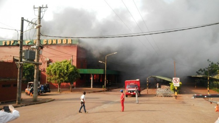 Un incendio destruyó totalmente las instalaciones del supermercado El Cóndor, uno de los más importantes del interior de Misiones, tras propagarse el fuego iniciado en la quema de basuras. El siniestro se habría iniciado cerca de las 16, horario de ingreso del personal de atención al público y de apertura de ese sector del comercio, de unos seis mil metros cuadrados. Según testimonios, empleados de la propia firma, habrían quemado basura en la parte posterior del predio y por acción del viento reinante el fuego se propagó rápidamente. El personal que se encontraba dentro del local, pudo salir del predio y fue atendido en distintos centros de salud, ante la inhalación de los gases tóxicos, ninguno de gravedad, por lo que fueron dados de alta unas horas más tarde.El crepitar del fuego y el calor que despedía llegaba a más de cien metros del lugar. Las explosiones potenciaban la sensación aterradora del momento. Muchos vecinos se acercaron al lugar y la ruta 14 fue cortada al tránsito desde la rotonda del kilómetro 8 al cruce con la ruta provincial 103.“Vi como empezó todo. El fuego empezó atrás, donde estaban quemando la basura del supermercado, y al rato vimos las llamas que cubrían el techo. Fue una locura, salimos corriendo”, relató un vecino.El supermercado pertenece a la familia Márquez Da Silva, reconocidos comerciantes obereños que se iniciaron en el rubro como almacén en la zona urbana de la comuna. Hace unos años se instalaron en la construcción de importantes dimensiones a la vera de esta arteria nacional, donde comercializaban mercaderías por mayor y por menor. El importante supermercado contenía productos de todo tipo, comestibles, carnicería, panadería, bazar, librería, limpieza, entre otros, por lo que la gran cantidad de material inflamable promovió el avance del fuego. En el lugar trabajaban casi tres centenares de empleados. La tristeza fue el común denominador entre los trabajadores que permanecieron en el lugar, conteniéndose mutuamente ante la dificultad que les traerá la pérdida de la fuente laboral. “Yo entraba más tarde, tenía el turno de las 17. Cuando me enteré salí corriendo para allá, no puedo creer ver todo destruido, sólo pienso qué va a ser de nosotros. Somos muchas familias que dependíamos de este trabajo”, lamentó una empleada, al borde del llanto. Las dotaciones de bomberos de la ciudad y de localidades vecinas nada pudieron hacer para evitar que el fuego se apoderara de todo el lugar. Vecinos del supermercado debieron evacuar sus pertenencias. El caos duró horas y aún se esperaba información oficial.La Cooperativa Eléctrica Limitada de Oberá (Celo) comunicó que la línea Aristóbulo del Valle sufrió las consecuencias del incendio ya que los tres conductores permanecían cortados.Los trabajos de reparación se podrán iniciar recién mañana cuando sea seguro para los técnicos. El personal de la Celo está a disposición de Emsa para colaborar con los trabajos. Ante la imposibilidad de alimentar desde Tres Esquinas, Emsa está tratando de brindar energía a la subestación Oberá Norte desde Aristóbulo del Valle si fuera posible. La zona afectada comprende el barrio El Chachi, Villa Barreyro 2, barrio Norte, barrio Judicial, Villa Blanquita. En consecuencia la ciudad también quedó sin agua potable.