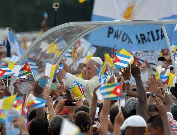 El papa Francisco llegó este domingo a la Plaza de la Revolución de La Habana, donde se reúne con el pueblo cubano, en el segundo día de una visita a este país comunista largamente aislado, al que llamó a abrirse y recuperar su vocación de "punto de encuentro".Durante la noche, centenas de cubanos y turistas empezaron a acercarse a este lugar emblemático donde los predecesores de Francisco, Juan Pablo II en 1998 y Benedicto XVI en 2012, se encontraron con una gran masa de fieles, entre un gran monumento en honor al héroe nacional José Martí y un retrato gigante del Che Guevara. Se espera que a esta misa asista casi un millón de personas, incluidos 3.500 invitados oficiales, entre los que destacan el presidente cubano, Raúl Castro, y la mandataria argentina, Cristina Kirchner.En la calurosa recepción de la población y de las autoridades al papa argentino, Raúl Castro abordó profusamente en su discurso de bienvenida los temas preferidos del pontífice: la protección del medio ambiente de cara a la conferencia de París y la defensa de la paz.Al anochecer del domingo, después de una ceremonia en la Catedral, Francisco tendrá un encuentro con jóvenes cubanos. Será  la ocasión de mostrar su espontaneidad en un diálogo improvisado, donde debe dar coraje a una juventud en dificultades en una isla en plena transición económica.Probable encuentro con FidelFrancisco se reunirá también este domingo en el palacio presidencial con Raúl Castro, quien probablemente le agradecerá por su papel de facilitador en el acercamiento con Estados Unidos. Pero también puede que sostenga una entrevista con su hermano mayor, el padre de la revolución cubana Fidel Castro, de 89 años, durante la jornada."Si se da, yo pienso que se da mañana", dijo el sábado a los periodistas el portavoz de la Santa Sede, padre Federico Lombardi.Benedicto XVI ya tuvo un encuentro con Fidel Castro durante su visita en 2012.A su llegada al aeropuerto de La Habana, el papa rogó a Raúl Castro que transmitiera sus "sentimientos de especial consideración y respeto a su hermano Fidel".En una entrevista con Radio Vaticano, el cardenal Jaime Ortega relacionó las medidas estadounidenses de flexibilización del embargo anunciadas el viernes, especialmente la eliminación del tope a las remesas familiares, con la visita del papa a Cuba y Estados Unidos. "Es una señal extraordinaria, y pienso que tiene relación con esta visita (…). El Santo Padre dio su contribución. Si bien dijo que no era un mediador, fue más que un mediador. Podríamos decir: "un animador"El padre Lombardi resumió el sábado en la noche los grandes asuntos que preocupan a Francisco en este viaje, que él mismo había comentado en el avión con los periodistas.Las preocupaciones que el papa debe abordar a lo largo de este periplo de ocho días que lo llevará el martes a Estados Unido son la paz amenazada por "una Tercera Guerra Mundial por etapas", las migraciones y la necesidad de acoger a los migrantes, y la cultura del diálogo, que  "debe permitir construir puentes".Justo antes de partir a Cuba el sábado, el papa contó haber estado "muy emocionado" por un encuentro con una familia cristiana de Damasco, a la que el Vaticano decidió acoger. Además declaró que el mundo está "sediento de paz".Fuente: Noticias Argentinas