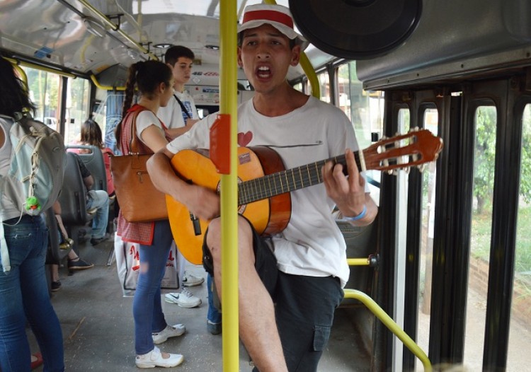 En la primera salida subió al 28 con su guitarra al hombro y tras presentarse y contar su sueño, interpretó tres temas. Antes de bajarse en una parada del centro de Posadas, pasó la gorra y juntó 36 pesos. Fue un buen comienzo para aportar a los fondos con los que costeará los gastos para llegar a Europa. “Hola señoras y señores!. Soy un chico de barrio. Nunca hice ésto, que es mas que nada para transmitir buena vibra. No vengo a pedir plata sino a ganar experiencia para un viaje que quiero hacer a Alemania”. Con esta frase improvisada, Nico subió al transporte urbano con la guitarra al hombro y comenzó a cantar, alentado por sus amigos. El propósito de la espontánea incursión de este alumno del quinto año Automotores del Instituto San Arnoldo Janssen tiene como fin reunir dinero para viajar a Europa y continuar allí la carrera de ingeniería mecánica. Pero también poder seguir estudiando música, que es algo que lo apasiona desde niño, cuando en su casa rompía los baldes emulando a batería. Con sonrisa plena, matizada de timidez y una dosis de nervios, aseguró que “no me imaginé tocar en un colectivo. Nunca tuve las agallas pero mis amigos, me incitaron. Me dijeron: dale mandate, es una oportunidad única para juntar plata para tu viaje”. Como tenían que venir al centro a comprar cosas para la Estudiantina, “agarré la guitarra, y todo fluyó. A los pasajeros les conté que soy músico, que toco el saxo, y que en Europa, además de estudiar, me gustaría hacer música”, agregó, recordando la primera incursión, en la que al pasar la gorra, juntó 36 pesos. Tras abordar el 28, en San Martín y Blas Parera, deleitó al pasaje con “Clásica y moderna”, de las Pastillas del Abuelo; luego con “Oso”, de Moris, y terminó con “Piensa”, que es un tema propio en el que “habla de lo que me gustaría ser, de tener un pino y pintar gaviotas”, dijo, y comentó que “sentí que era algo diferente, que no era un chico más subiendo a un bondi, cantando una canción, porque les conté un poco mi historia y los empece a mirar a los ojos. Por eso al bajar me desearon éxitos”.Dentro de un año y medio, Nico piensa emprender la travesía junto a su compañero Robin Hendrik Bach, cuyo padre también cursó en el Janssen y luego se radicó con su familia en Alemania. “Él me va a guiar para conseguir la estadía, y después me largo solo. Me voy por seis meses para conseguir academia y ambientarme. Si me va bien, espero quedarme, aprender alemán y regresar con mi titulo. Ingeniería mecánica es muy larga pero como voy con Dios, todo fluirá de otra manera”, manifestó confiado de su acompañamiento. Destacó el apoyo de su papá: Mario Alberto, sus hermanas Cintia, Magdalena y Verónica, su novía Rocío Duarte, y de su mamá, Ana María Aguirre, a quien considera “una genia. Ella siempre quiso que fuera ingeniero y me bancó en el tema de la música. Cuando era chico le rompía baldes, después me compró una guitarra a la que dejaba y después de un tiempo volvía tomar”, dijo Nico, quien se define autodidacta y que los martes toca el bajo en la iglesia Presencia de Dios, donde también pudo incursionar en piano. Junto a Jeremías Duarte y Joaquín Madelaire formó la banda “Loor” con la que “pregonamos alabanzas a Dios y mucha buena vibra musical”.