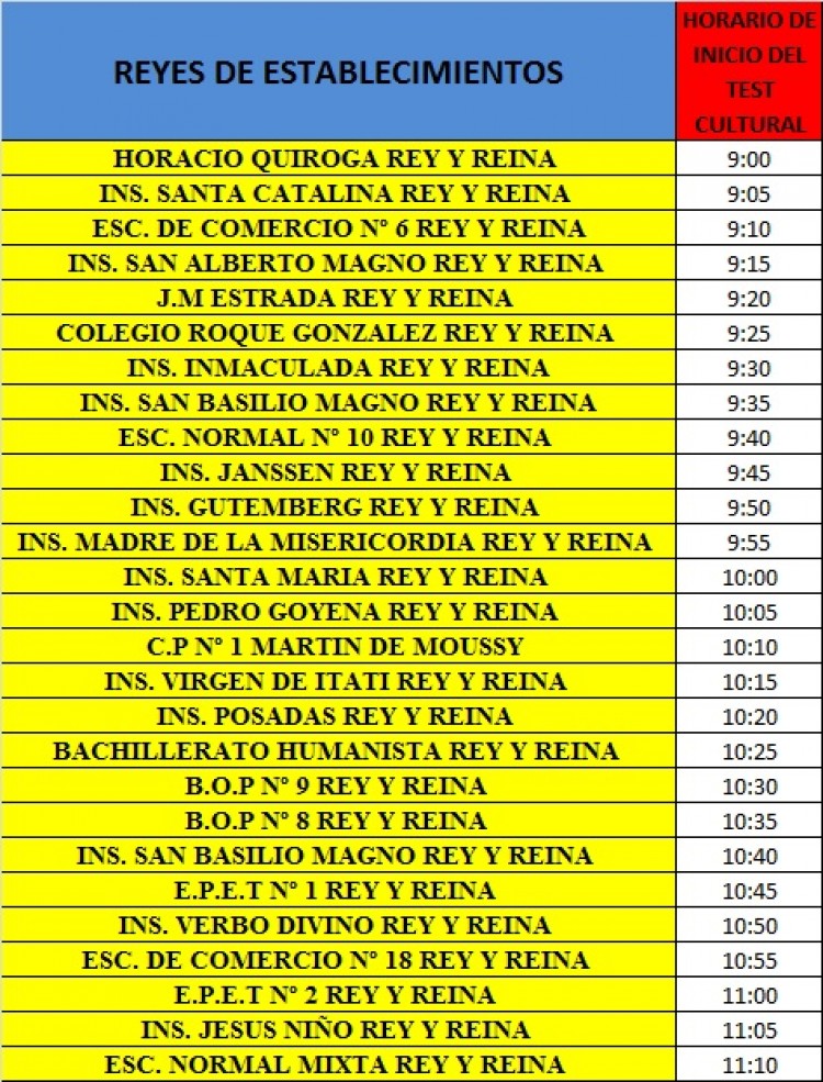 Son 25 reinas y 25 reyes que pasarán ante el jurado que evaluará sus condiciones culturales, de oralidad y dialéctica. Si bien desde la Asociación Posadeña de Estudiantes Secundarios (Apes) no se confirmó la fecha de coronación, anticiparon a PRIMERA EDICIÓN que este viernes y sábado se cumplirán las jornadas de desfile en la costanera, suspendidas debido al mal tiempo. A su vez indicaron que aún no está confirmada la fecha para el show de scolas. Cabe recordar que <a href="http://www.primeraedicion.com.ar/nota/5161/la-reina-de-los-estudiantes-misioneros-busca-la-corona-nacional.html">la actual reina de los estudiantes misioneros, María Victoria Corró (17), viajó el lunes a Jujuy</a> para representar a Misiones y competir por la corona en la Fiesta Nacional del Estudiante. La joven obereña deberá estar en la capital jujeña el miércoles para sumarse a la agenda de las candidatas a la corona nacional, que actualmente es ocupada por Carolina Silva, de Chubut. La gala show de coronación se realizará el sábado con una imponente fiesta en San Salvador de Jujuy.