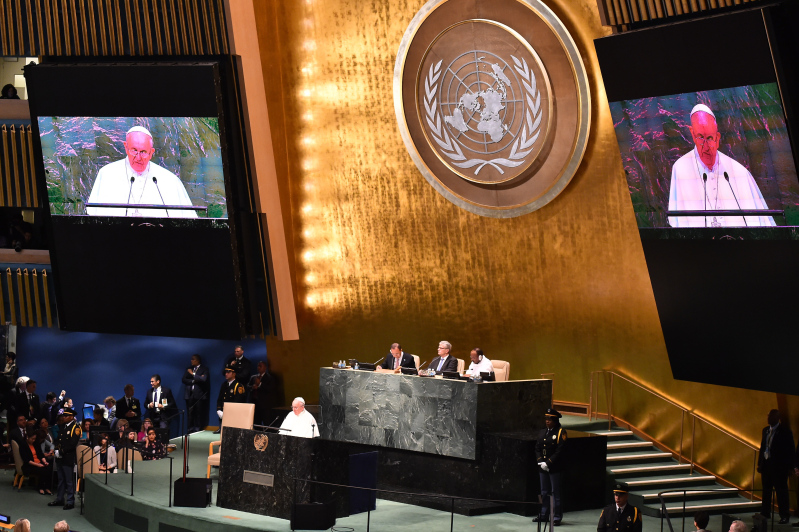 Recorré las mejores imagenes del papa Francisco este viernes ante la Asamblea General de la ONU donde pronunció un histórico discurso a evitar el "abuso" de los países en desarrollo a través de su "sumisión asfixiante" en el sistema financiero mundial, y denunció el narcotráfico que "silenciosamente" mata a millones de personas.También, el pontífice pidió un mundo libre de armas nucleares, lo que lo llevó a ser aplaudido en la Asamblea General de Naciones Unidas, incluso por el ministro del exterior iraní Mohamed Javad Zarif. Francisco hizo estas declaraciones este viernes en la sede de la ONU, en su primera parada durante su visita de un día a Nueva York.El Papa reconoció el reciente acuerdo nuclear iraní en su discurso ante más de 100 líderes mundiales y diplomáticos, argumentando que era una prueba de que la voluntad política y la paciencia pueden rendir resultados.Pero Francisco lamentó que los conflictos sean álgidos en otras partes del mundo y que los cristianos y las minorías religiosas, en especial, sean objetos de ataques. Pidió a los líderes mundiales reflexionar sobre los inocentes que son asesinados.AbortoEn referencia al aborto, el papa Francisco dijo este viernes ante la Asamblea General de Naciones Unidas que la vida es sagrada en cada una de sus etapas.El Vaticano ha rechazado durante años los llamados de la ONU para que las mujeres tengan acceso a los anticonceptivos y abortos, y en su discurso ante la Asamblea General Francisco pidió respeto para cada etapa de la vida. También dijo que se reconozca lo que calificó como "la diferencia natural entre hombres y mujeres".Denunció lo que llamó como "colonización ideológica" de los países en desarrollo, una referencia de cómo las ideas sobre la planeación reproductiva y los derechos de los homosexuales suelen imponerse en países pobres como condición para que reciban ayuda.Educación, vivienda, trabajo y tierraEl papa Francisco dijo en Naciones Unidas que los pobres del mundo tienen derecho a educación, vivienda, trabajo y tierra.En su discurso ante más de 100 líderes mundiales y diplomáticos, Francisco pidió que los pobres tengan acceso inmediato a alimentos y agua, trabajo y vivienda así como libertad religiosa.Derecho al medio ambienteEl papa Francisco declaró que hay un "derecho al medio ambiente" y que la humanidad no tiene autoridad para abusar de él o destruirlo. Francisco hizo esta declaración durante un discurso ante Naciones Unidas.Con la esperanza de impulsar acciones concretas en la próximas negociaciones sobre cambio climático a celebrarse en París, Francisco acusó a los países poderosos del mundo de una "sed egoísta y sin límites" por dinero. Dijo que esto los ha llevado a destruir el planea y a empobrecer a los débiles y en desventaja.El Sumo Pontífice argentino fue recibido por el secretario general de la ONU Ban Ki-moon, su esposa y un grupo de niños que le entregaron unas flores poco antes de las 08.30 locales (9.30 de la Argentina).Se trata de la quinta visita de un papa a la sede de Naciones Unidas, luego de las de Pablo VI en 1965, Juan Pablo II en 1979 y 1995 y Benedicto XVI en 2008.Fuente: Agencia de Noticias AFP/NA