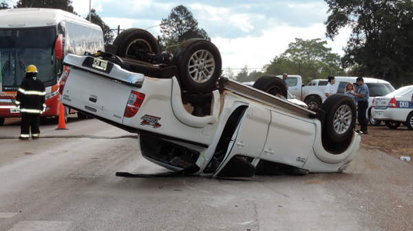 CANDELARIA. Un espectacular siniestro vial terminó con una camioneta con las ruedas al aire y su conductor lesionado, en principio fuera de peligro, en un hecho registrado ayer por la tarde en el acceso a Candelaria.Fuentes policiales contaron que el episodio tuvo lugar alrededor de las 15 sobre la ruta nacional 12 casi en el acceso a la antigüa capital provincial, por dónde circulaba una camioneta Toyota Hilux al mando de un hombre de 66 años, en dirección a Santa Ana.Por razones que se tratan de dilucidar, en determinado momento ese rodado colisionó con un automóvil Polo al mando de otro hombre, de 39 años.Producto de la violenta colisión la camioneta se salió de control y terminó volcada sobre la arteria nacional.?Su conductor sufrió lesiones de consideración y fue derivado al Hospital Escuela de Agudos Ramón Madariaga, donde se encontraría fuera de peligro.Efectivos de la comisaría local y de la Unidad Regional X trabajaron en la escena del hecho.